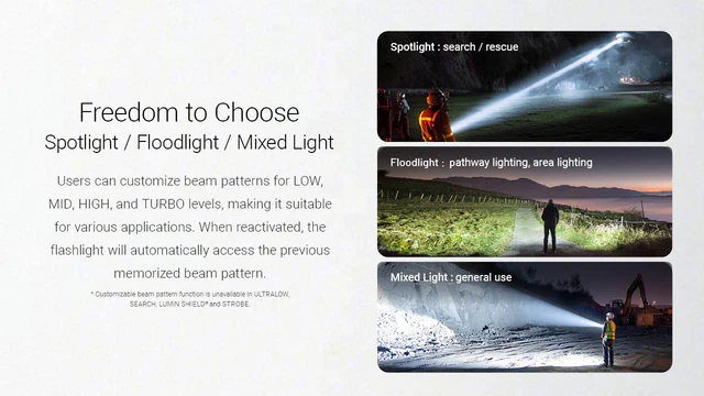 The Nitecore EX7 is a high-performance flashlight with three customizable beam patterns designed to adapt to any scenario. With a maximum output of 6,000 lumens and a throw distance of up to 546 yards, it’s an essential tool for outdoor exploration, search-and-rescue, and patrolling.